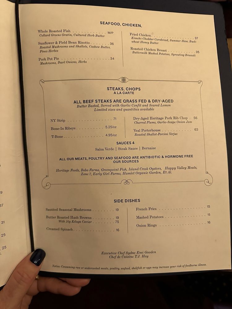 Introducing Gage and Tollner, a classic steakhouse in Brooklyn known for its upscale and romantic atmosphere. With a wide array of menu options, including delicious appetizers, shared plates, and flavorful cocktails, this restaurant offers a charming and fun dining experience. Customers rave about the top-notch service, old-time charm, and outstanding food quality. Highlights include the kimchi cornbread, oysters, and signature Parker rolls. The exquisite ambiance, impeccable service, and delectable dishes make Gage and Tollner a must-visit for a special dinner or dessert outing. Overall, this restaurant stands out for its elevated lunch options, impressive drink selection, and classic steakhouse vibes. Make a reservation today to experience the exceptional dining experience Gage and Tollner has to offer.